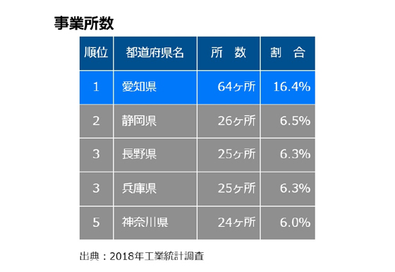 愛知県のロボット産業振興/県内の取組/ロボット産業集積の状況より